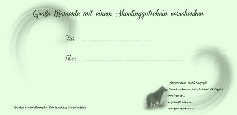 Ihr könnt bei mir auch Gutscheine bekommen . Diese werden individuell auf Eure Wünsche ausgestellt .